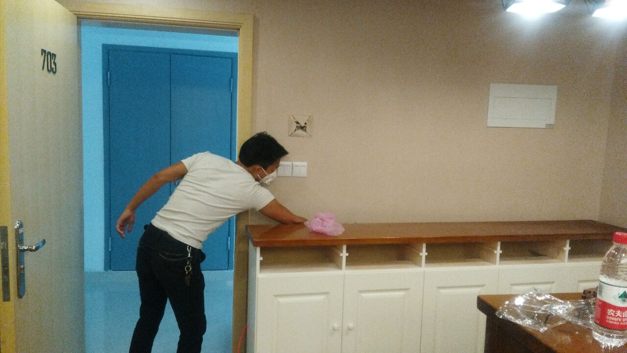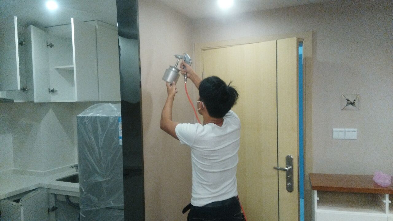治理方案及施工:公司針對(duì)其房屋結(jié)構(gòu)特點(diǎn)及污染情況,我公司技術(shù)及施工人員采用專項(xiàng)治理的施工方案,針對(duì)其墻體立面(墻紙)、沙發(fā)、櫥柜等污染源表面使用我公司自主研發(fā)的利純納米光觸媒進(jìn)行甲醛清除,采用高壓霧化噴涂的方法,最大限度消除室內(nèi)的甲醛污染,對(duì)于重新刷漆的家具、門、書架、衣柜等采用甲醛清除劑進(jìn)行處理,對(duì)于床底部位則使用生物酶異味清除劑,針對(duì)不同污染物,做全面治理,治理后的室內(nèi)環(huán)境達(dá)到國家規(guī)定的室內(nèi)空氣質(zhì)量指標(biāo)范圍內(nèi),業(yè)主對(duì)我公司的治理給予充分肯定。下面為施工現(xiàn)場照片: